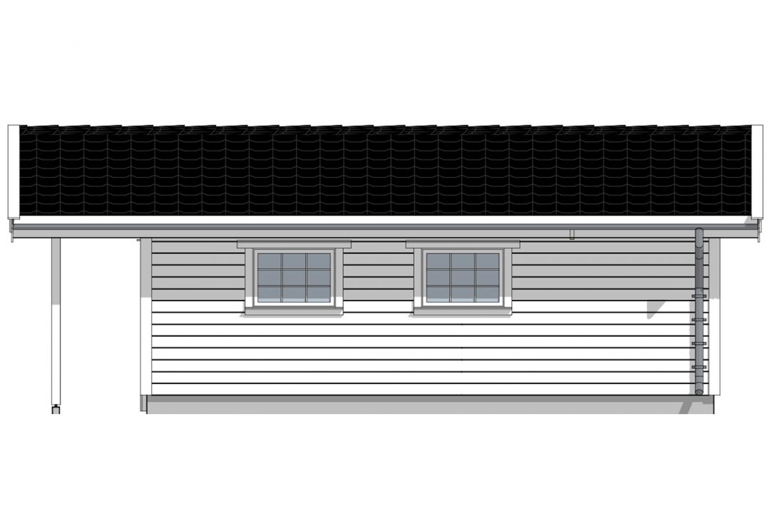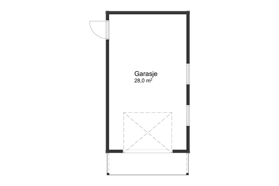 En dør er plassert i bakre del av bygget som lar deg gå ut og inn av garasjen uten å måtte heve porten.