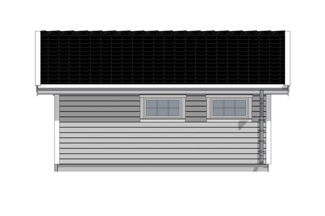 Om familien disponerer mer enn en bil, er det svært praktisk med dobbel garasje. En dør med smårute-vindu er plassert på vestsiden av garasjen for enkel tilgang uten å måtte åpne garasjeprotene. Vinduer er satt inn på både øst- og vestsiden av bygget for godt lysinnslipp og garasjen fremstår som klassisk og fin.