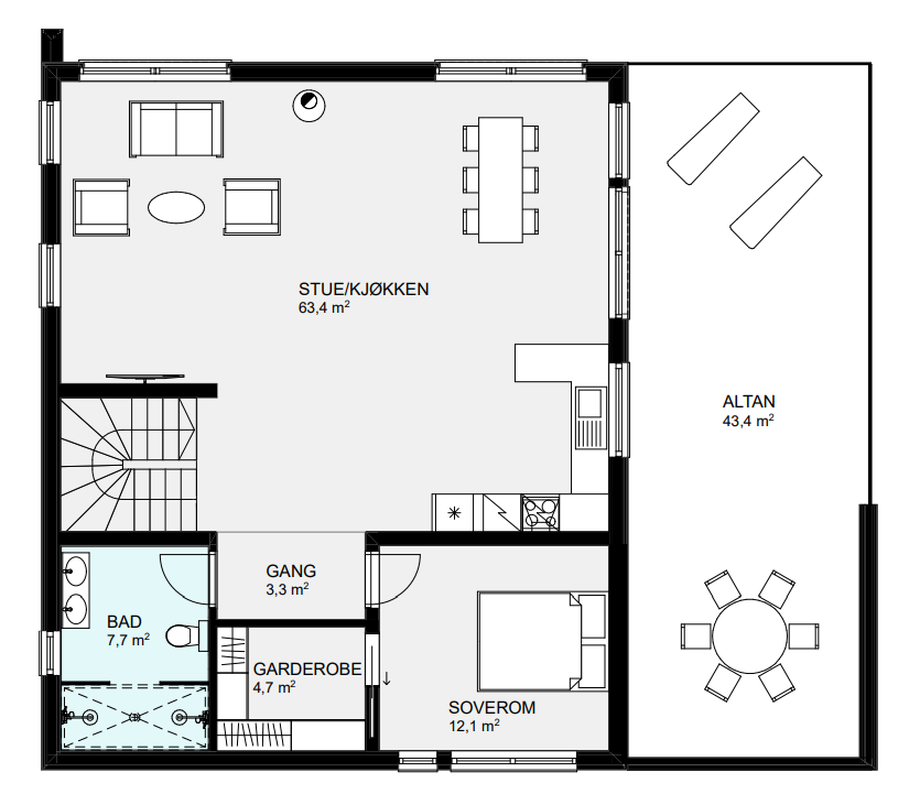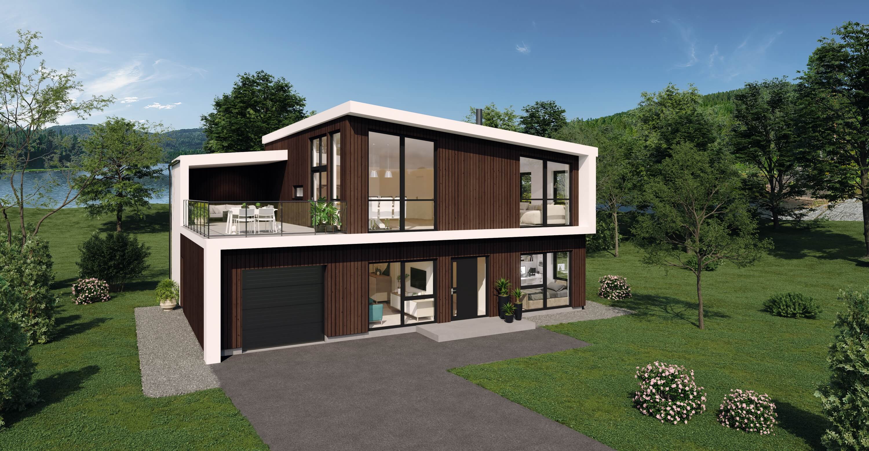 Med Faro får du en særpreget funkisbolig, med en herlig terrasse og integrert garasje. Store vindusflater og en skrå himling, skaper et åpent og luftig preg.