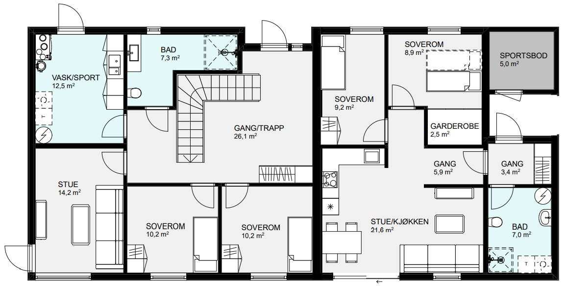Dette er en bolig som vokser med familien, hvor man kan benytte utleiedel til eget bruk dersom man har behov for litt ekstra plass.